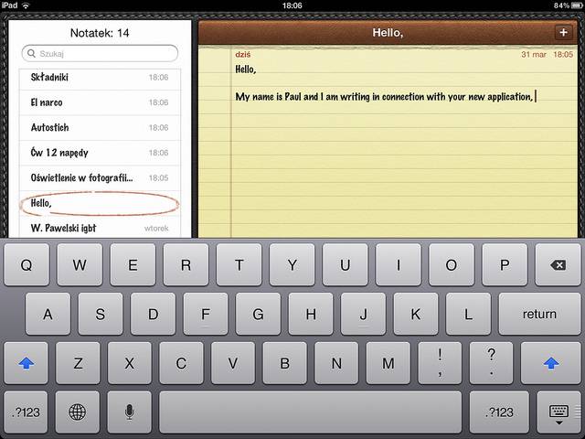 Czy w tablecie potrzebny jest wyświetlacz o tak wysokich parametrach? Cóż, z pewnością można się bez niego obejść. Z drugiej strony komfort, jaki oferuje, jest nie do przecenienia. Jakość wyświetlanego obrazu sprawia, że wszystko wygląda po prostu doskonale - od czcionki na stronie internetowej po film wyświetlany w rozdzielczości 1080p. Niektórzy użytkownicy skarżyli się na występowanie na ekranie żółtych przebarwień. Mój egzemplarz też nie uniknął tego problemu, wyświetlany obraz był w jednym z narożników bardziej żółty. Po kilku godzinach używania przebarwienie zniknęło i nie pojawiło się z powrotem. Zawinił prawdopodobnie klej, którym sklejono ekran i nie zdążył wyschnąć. W przypadku podobnego problemu warto więc poużywać trochę iPada i wymieniać go dopiero wtedy, gdy przebarwienie nie zniknie po kilku dniach.