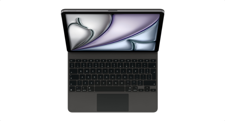 Klawiatura Magic Keyboard doskonale uzupełnia iPada Air i zapewnia niesamowitą wygodę pisania. Jest wyposażona w gładzik do zadań wymagających precyzji i wyróżnia się smukłą, przenośną konstrukcją. Ma rząd 14 klawiszy funkcyjnych, złącze USB‑C do ładowania i skutecznie chroni iPada z obu stron. Wspornik efektownie unosi urządzenie nad klawiaturą i pozwala swobodnie regulować kąt nachylenia ekranu, a obszerny szklany gładzik rozszerza możliwości pracy z iPadOS.