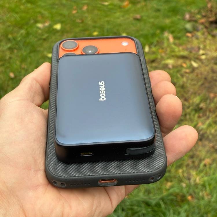 Powerbanki wyposażone w indukcyjne złącze magnetyczne to wygodne rozwiązanie dla użytkowników iPhone’ów z MagSafe. Dzięki nim możemy jednocześnie korzystać z telefonu i ładować go bez żadnych dodatkowych kabli. Jeszcze kilka lat temu tego typu powerbanki były stosunkowo nieduże i miały niewielką pojemność. Teraz bez problemu znajdziemy podczepiane magnetycznie do iPhone’a powerbanki o pojemności nawet 10 tysięcy mAh. Taki powerbank testuję od miesiąca — to BASEUS PicoGo AM61.