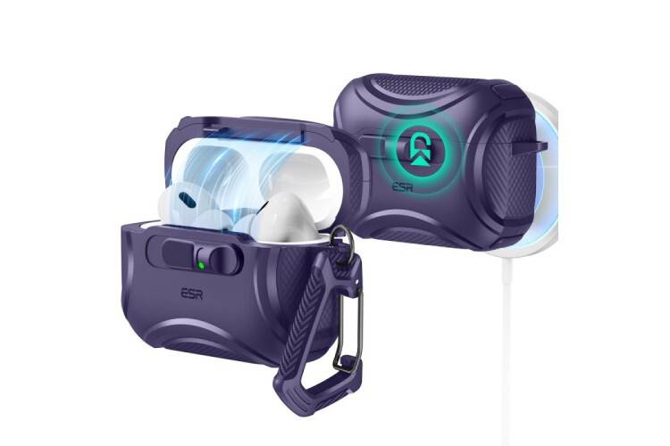 Mechanizm Slide to Open umożliwia błyskawiczny dostęp do słuchawek — wystarczy przesunąć przedni suwak, aby magnesy się odblokowały i pokrywka automatycznie się otworzyła, pozwalając na obsługę jedną ręką. Wbudowany system MagSafe gwarantuje stabilne połączenie z ładowarkami MagSafe, dzięki czemu ładowanie bezprzewodowe jest szybkie i wygodne. Całość uzupełnia mocna ochrona 360° – odporne na wstrząsy tworzywo i wzmocnione narożniki Air Guard skutecznie zabezpieczają etui ładujące przed upadkami i uderzeniami.