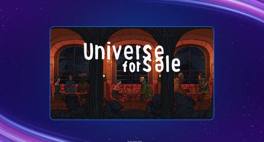 Universe for Sale to przygodówka typu point & click utrzymana w konwencji science-fiction. Akcja gry toczy się na stacji kosmicznej dryfującej wśród chmur Jowisza, a jej głównymi bohaterami są kobieta zajmująca się tworzeniem miniaturowych wszechświatów oraz członek sekty, który pozbył się własnego ciała by osiągnąć oświecenie. Rozgrywka polega tu głównie na eksploracji i prowadzeniu dialogów. Universe for Sale charakteryzuje się przy tym naprawdę ciekawą, komiksową stylistyką oprawy graficznej.