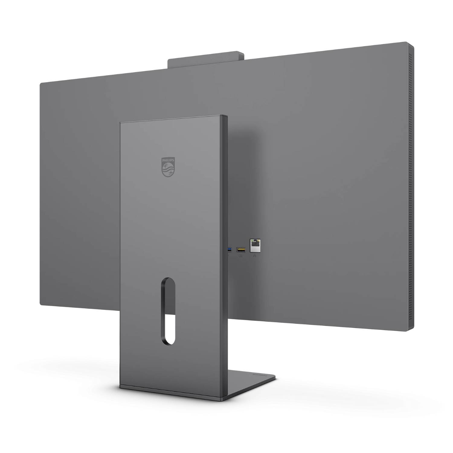Monitor z wyglądu kojarzyć się może tylko z jednym, a dokładnie z innym monitorem — wspomnianym już Studio Display od Apple. Podobieństwa na pierwszy rzut oka są po prostu uderzające: bryła monitora, perforacja na krawędziach, kształt stopy. Po bliższym przyjrzeniu różnice są oczywiście znaczne: tworzywo zamiast aluminium w przypadku obudowy, no i — co nie mniej ważne — sama stopa nie kosztuje kilku tysięcy złotych. Zwraca uwagę panel kamery i czujników, który na stałe wystaje ponad górną krawędź monitora. Na jego szczycie umieszczono przełącznik pozwalający wyłączyć kamerę i mikrofon, tylko mikrofon lub pozostawić oba aktywne. Poza tym — nie będę ukrywał — to moim zdaniem najładniejszy monitor Philipsa, jaki dotąd testowałem. Myślę, że producent z pełną premedytacją stworzył ten model z myślą o użytkownikach komputerów Mac czy generalnie użytkownikach produktów Apple, i że podobieństwa do Studio Display nie są przypadkowe. To żaden zarzut z mojej strony, bo ten monitor naprawdę wygląda świetnie!