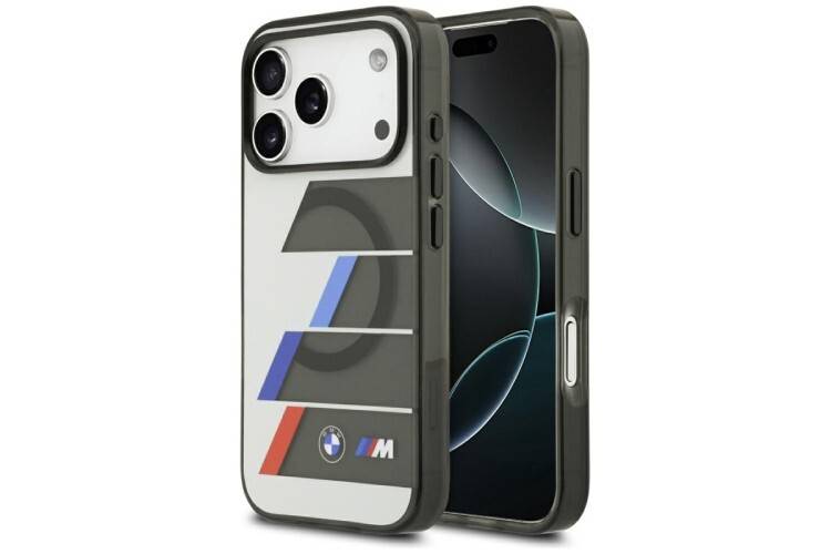 BMW M IML Metal Buttons Tricolor Lines MagSafe to ekskluzywne etui z prestiżowej kolekcji BMW M, stworzone z myślą o użytkownikach ceniących sportowy charakter, minimalistyczny design i najwyższą jakość wykonania. Sygnowane przez jeden z najbardziej rozpoznawalnych koncernów motoryzacyjnych na świecie, stanowi idealny wybór dla posiadaczy urządzeń z technologią MagSafe. Etui wykonano z wytrzymałego połączenia PC/TPU, wyposażając je w półprzezroczysty korpus, który subtelnie eksponuje kolor telefonu i nadaje mu nowoczesny, techniczny wygląd. Tył zdobi charakterystyczny motyw BMW M — geometryczna grafika z półprzezroczystymi pasami w kultowych barwach M (niebieskiej, granatowej i czerwonej) oraz logo BMW M, które podkreśla autentyczność i wyjątkowość projektu.