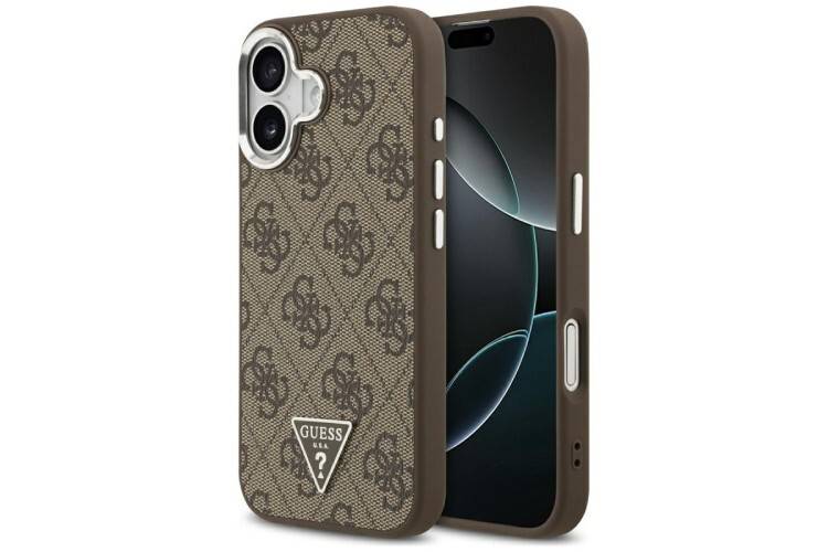 Guess 4G Triangle Logo MagSafe charakteryzuje się jednym z bardziej znanych motywów używanych przez Guess. Cały tylny panel etui pokryto emblematami 4G, które umiejscowiono na bardzo przyjemnej w dotyku fakturze saffiano. Trójkątne logo Guess umieszczono na dole. Połączenie tych elementów sprawia, że całość prezentuje się bardzo elegancko.
