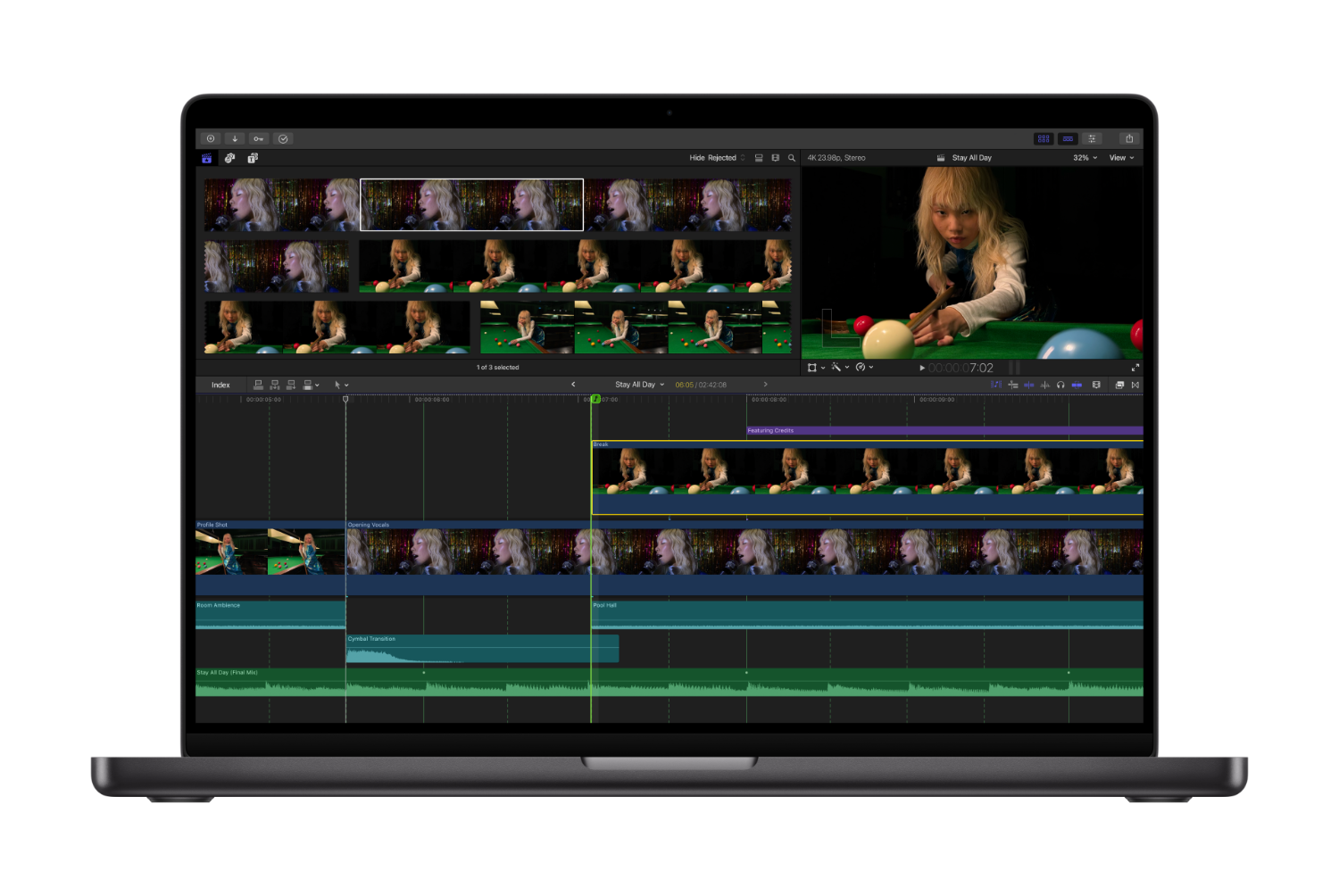 Final Cut Pro w wersji dla Maca i iPada otrzymał 60 nowych tytułów i efektów przejścia oraz 14 nowych elementów graficznych, liczników czasu i efektów odliczania. Program zyskał funkcję wyszukiwania konkretnych dialogów w materiale wideo (Transcript Search) oraz wyszukiwania konkretnych obiektów, osób, miejsc czy akcji w materiale wideo (Visual Search). Najważniejszą nowością dla mnie w Final Cut Pro jest wykrywanie rytmu ścieżki audio i oznaczanie rytmu na linii czasu. Ta funkcja bardzo przydaje mi się podczas montowania wideo z koncertów moich zespołów. Dzięki temu cięcia i przejścia są dynamiczne i utrzymane w rytmie kawałka – i to zagranego na żywo. Z kolei Final Cut Pro dla iPada zyskał dodatkowo wsparcie sztucznej inteligencji do edycji i montażu wielu klipów wideo oraz ich synchronizacji ze ścieżką audio w ramach Montage Maker, a także możliwość zaznaczania i edycji wielu fragmentów ścieżki wideo oraz korzystania z zewnętrznego monitora do podglądu.