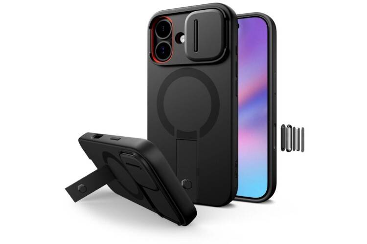 Dodatkowo, etui jest kompatybilne z technologią MagSafe, co umożliwia szybkie ładowanie magnetyczne i bezpieczne mocowanie do akcesoriów. Wbudowany pierścień MagSafe pełni również funkcję podstawki oraz uchwytu, co zwiększa komfort użytkowania urządzenia. Inne kluczowe cechy obejmują idealnie dopasowane wycięcia, a także porty chronione przed kurzem i brudem. Całość jest lekka i zapewnia wygodną instalację dzięki jednoczęściowej konstrukcji etui.