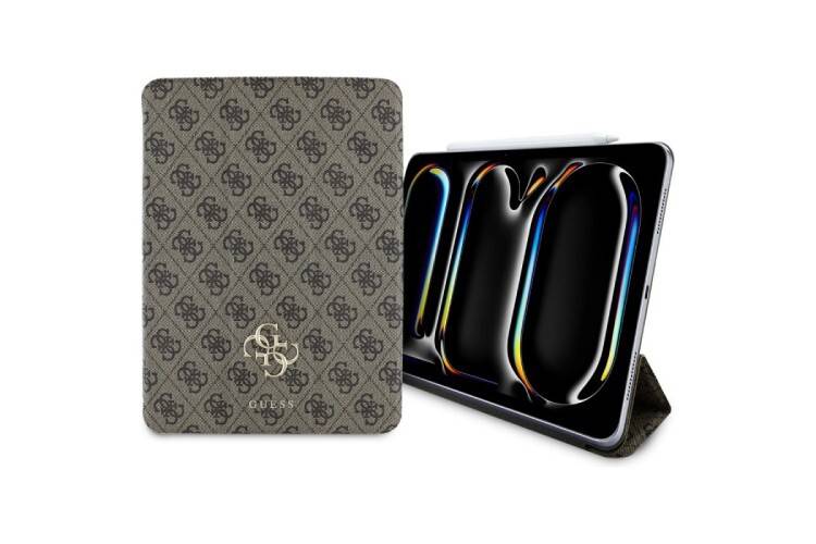 W dolnej części znajduje się subtelne logo Guess oraz elegancka, złota naszywka 4G, podkreślające prestiż i wyjątkowość tego modelu. Etui doskonale dopasowuje się do iPada, zapewniając skuteczną ochronę przed zarysowaniami, wstrząsami i przypadkowymi upadkami – bez kompromisów w dostępie do portów i przycisków. Elastyczne boki umożliwiają łatwy montaż i demontaż pokrowca, jednocześnie chroniąc ramkę urządzenia przed uszkodzeniami. Delikatnie podniesione krawędzie narożników dodatkowo zabezpieczają ekran przed bezpośrednim kontaktem z powierzchnią. Przednia klapka etui pełni nie tylko funkcję ochronną, ale również służy jako praktyczna podstawka, idealna do oglądania filmów, przeglądania zdjęć czy prowadzenia wideorozmów. To idealny wybór dla osób, które szukają eleganckiego i funkcjonalnego dodatku do swojego iPada.