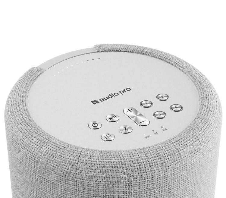Na górnej, metalowej powierzchni znalazł się panel sterowania z fizycznymi przyciskami, co jest bardzo wygodne. Poza przyciskami regulacji głośności oraz play/pause znalazły się także przyciski power, wyboru źródła, parowania Bluetooth oraz wyboru jednego z czterech presetów ustawionych w aplikacji (np. list odtwarzania). Na górnej powierzchni, przy tylnej krawędzi, znalazł się także wskaźnik głośności złożony z dziesięciu diod.