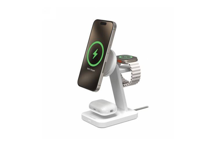 Stacja ładująca Mophie Snap+ 3-in-1 Qi2 dostępna jest w kolorze białym.