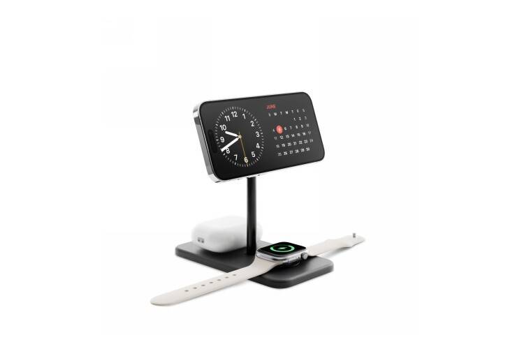 HiRise 3 Deluxe umożliwia jednoczesne ładowanie iPhone’a, Apple Watcha i słuchawek AirPods, zapewniając szybki dostęp do wszystkich urządzeń. Stylowa konstrukcja z czarnego aluminium i wegańskiej skóry pozwala ładować trzy urządzenia przy użyciu jednego kabla, eliminując bałagan z przewodami.
